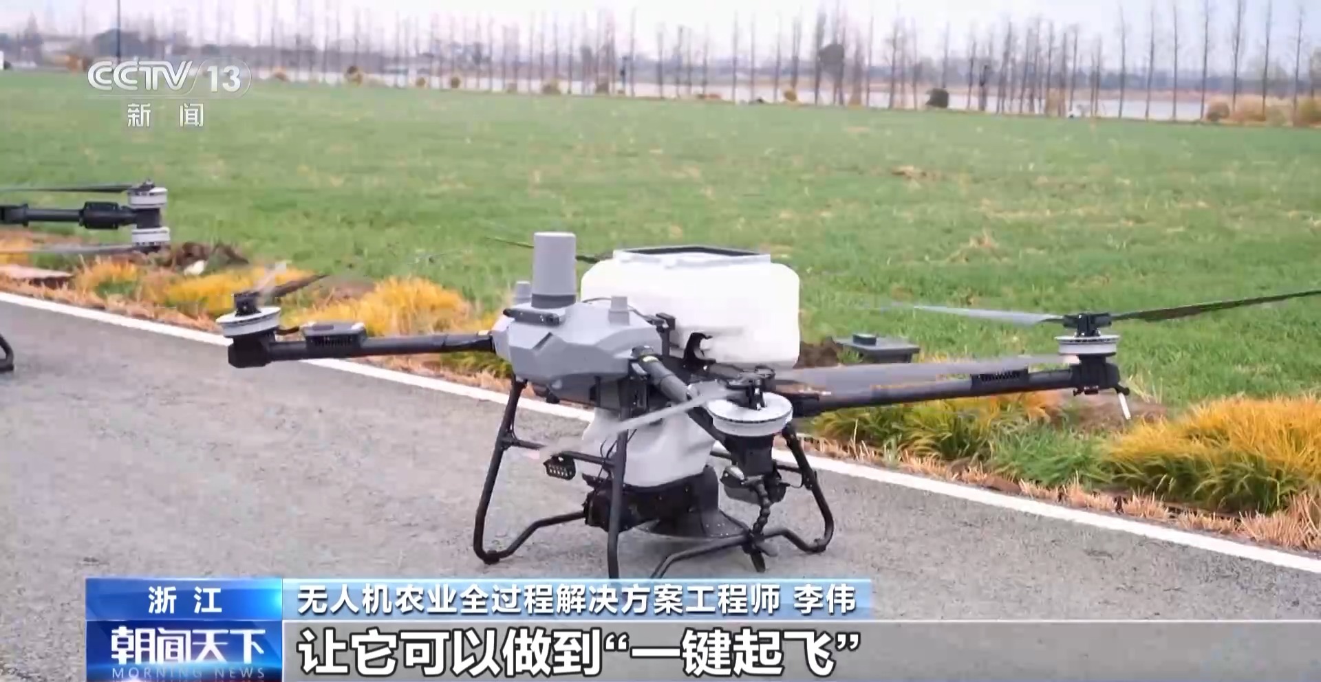 *總枱央視記者 蔣樹林:*在浙北大糧倉——浙江省嘉興市的嘉善縣,這台無人機是今年剛剛新出的最新的型號。