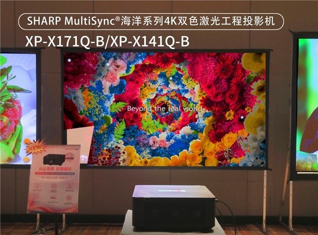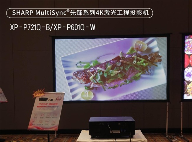 其中,SHARPMultiSync®**王牌系列憑藉其雙色激光的技術優勢,將其DCI–P3級別的超廣色域範圍展現得淋漓盡致。其鮮豔靚麗、層次豐富的畫面色彩呈現,為與會嘉賓帶來了前所未有的視覺體驗。