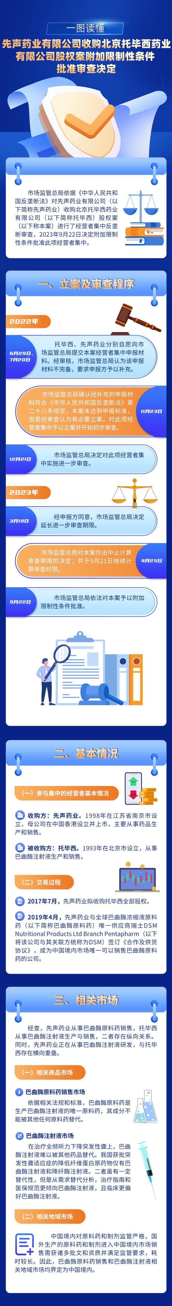 本次判決涉及市場監管總局於2023年9月依法對先聲藥業有限公司(以下簡稱“先聲藥業”)收購託畢西股權交易作出的2023年第42號決定(以下簡稱“被訴決定”)。市場監管總局對交易全面審查後,認定交易對中國境內巴曲酶注射液市場可能具有排除、限制競爭效果,要求先聲藥業和集中後實體履行解除獨家協議、剝離在研業務、下調藥品價格等義務。託畢西不服被訴決定,於法定期限內向市場監管總局申請行政複議。2024年2月,市場監管總局作出國市監複議〔2023〕127號行政複議決定,維持被訴決定。託畢西於2024年3月提起行政訴訟。北京知識產權法院組織訴訟各方進行了證據交換和質證,認定市場監管總局作出的決定認定事實清楚、適用法律正確、程序合法,判決駁回託畢西的訴訟請求。