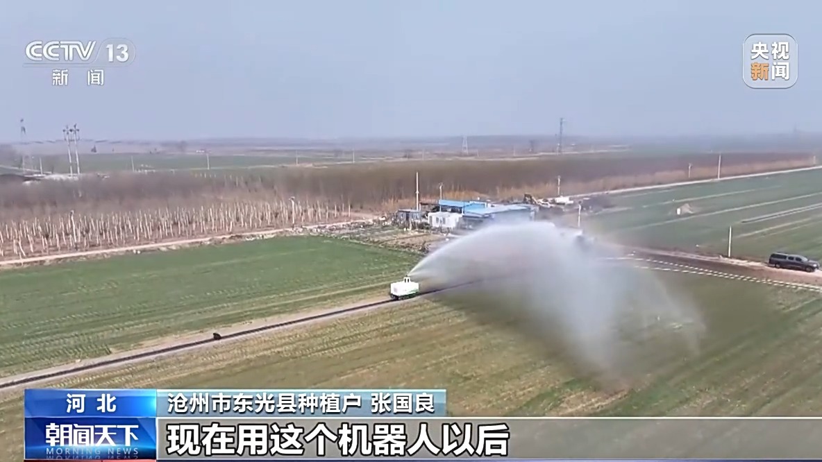 *滄州市東光縣種植户 張國良:*原來用人工澆的時候就得5天才能澆完,現在用這個機器人以後,1天的時間就能澆完,非常省力、省時還節水。現在1畝地需要10塊錢的柴油費,非常省錢。