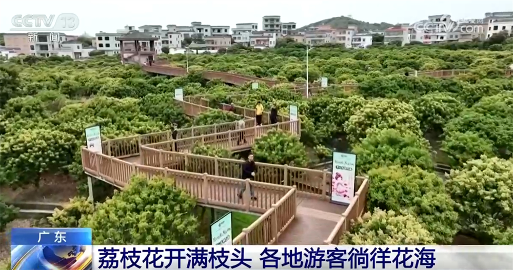 近日,廣東茂名的142萬畝荔枝林花開如繁星,長勢喜人,吸引了眾多遊客暢遊荔枝花海。