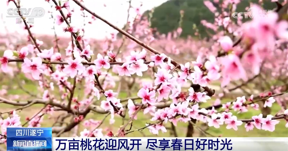 *央視網消息:*眼下正值桃花盛放的時節,遂寧市安居區攔江鎮萬畝桃林綻放,吸引眾多遊客踏青賞景。