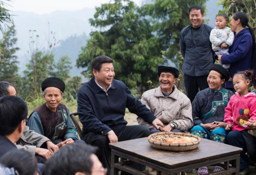 2013年11月3日,習近平總書記在湘西十八洞村考察時,同村幹部和村民座談。