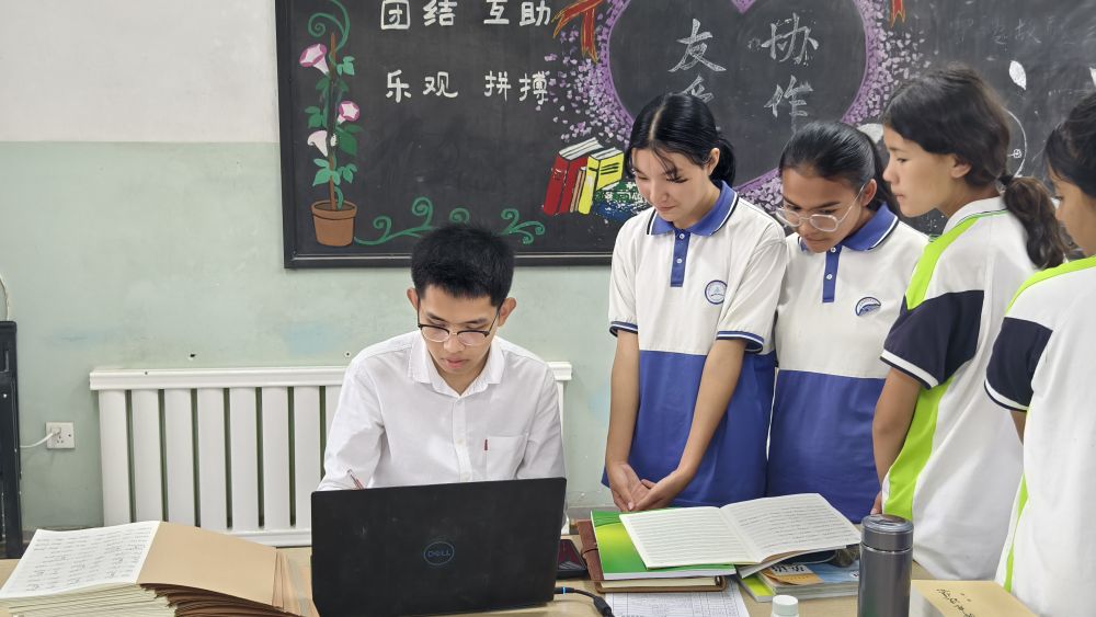 同樣來自山東的小夥兒蓋彥吉對支教事業抱有激情。2024年夏天,從中國農業大學本科畢業後,他參加了學校的西部計劃研究生支教團,來到莎車縣第三中學任教。在教學工作中,蓋彥吉發現,青年教師的天然親和力,能更好激發學生的求知慾。