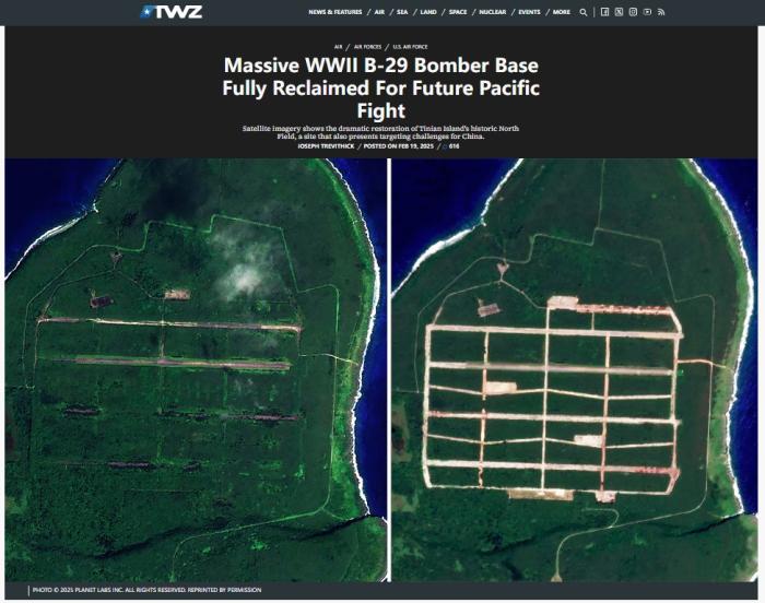 美軍整修二戰機場衞星圖對比(左為修復前,右為近況)。圖/美國“戰區”網站