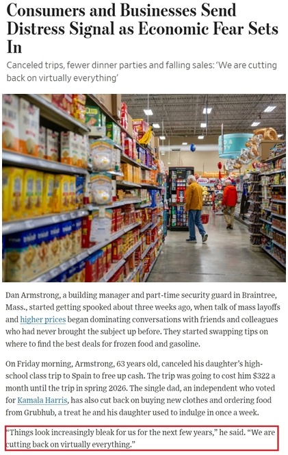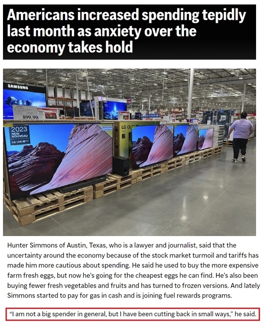 他接受採訪時表示,股市動盪和關税帶來的經濟不確定性讓他對支出更加謹慎。“我不是個大手大腳的人,但現在不得不在小地方進一步削減開支”。