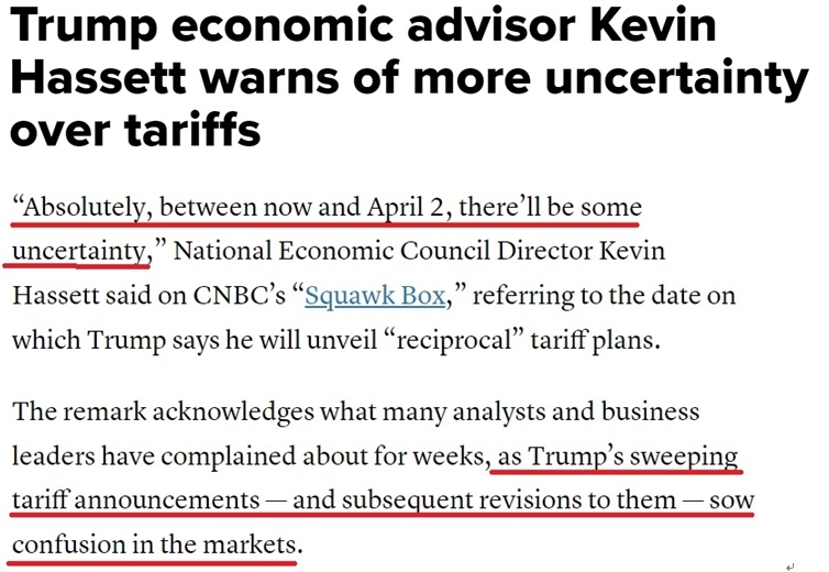 不過他也承認,美國不斷演變的關税議程給經濟帶來更多不確定性,特別是從現在到“對等關税”計劃實施的4月2日。