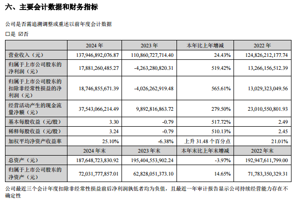 【環球網消費綜合報道】2024年,牧原股份在經歷了2023年的虧損後,成功逆襲,實現了業績大幅增長。根據公司最新發布的年報,2024年牧原股份出欄生豬7160.2萬頭,同比增長11.2%,營業收入達到1379.47億元,同比增長24.43%,歸母淨利潤178.81億元,相比2023年的42.63億元虧損,實現了顯著的盈利大增。