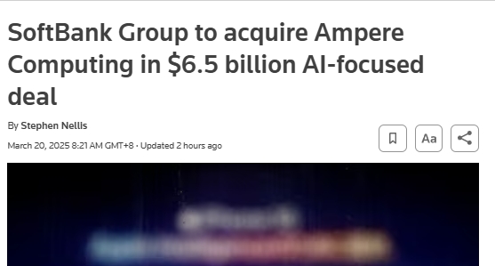 外媒:軟銀65億美元收購美國芯片初創公司Ampere,加速AI創新