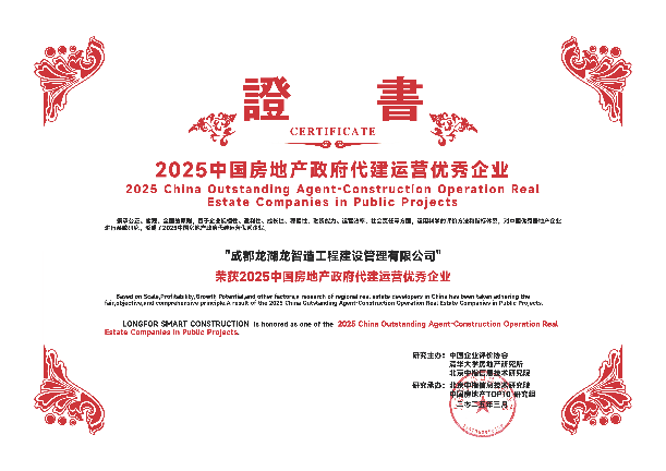 2025年3月,中指研究院召開2025中國房地產百強企業研究成果發佈會。活動上,龍湖龍智造同時斬獲 “2025中國房地產代建運營優秀企業”及“2025中國房地產政府代建運營優秀企業”兩項殊榮。