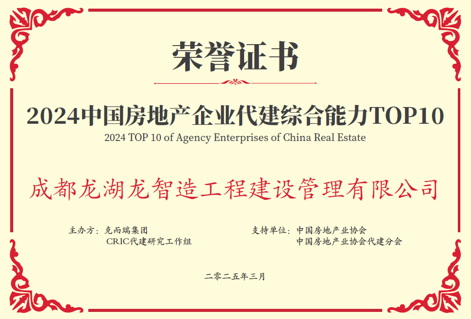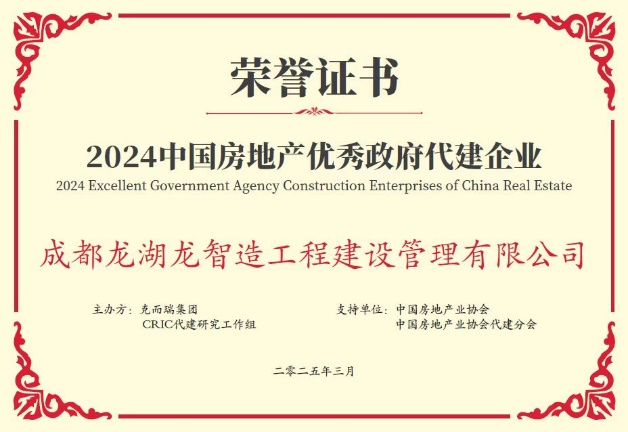 同期,在克而瑞發佈的“2024年中國房地產企業代建綜合能力排行榜”中,龍湖龍智造同樣以強勁實力位居第六,並獲得“2024年中國房地產優秀政府代建企業”稱號。