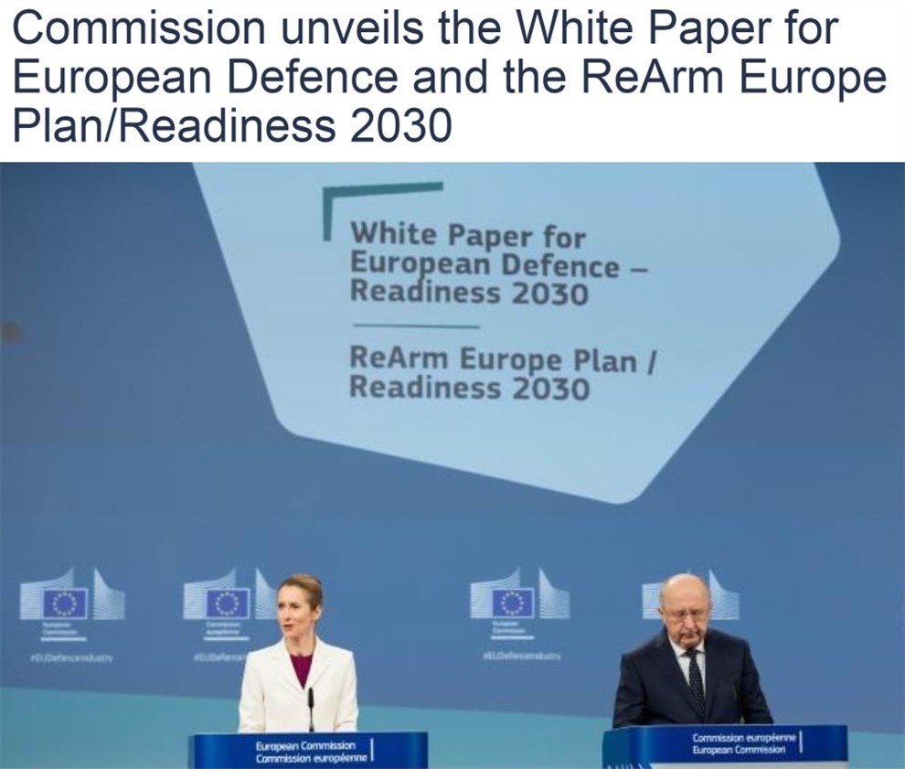 為了重整並提升歐洲防務水平,歐盟委員會當地時間19日公佈了《歐洲防務白皮書》以及《歐洲重新武裝計劃》。