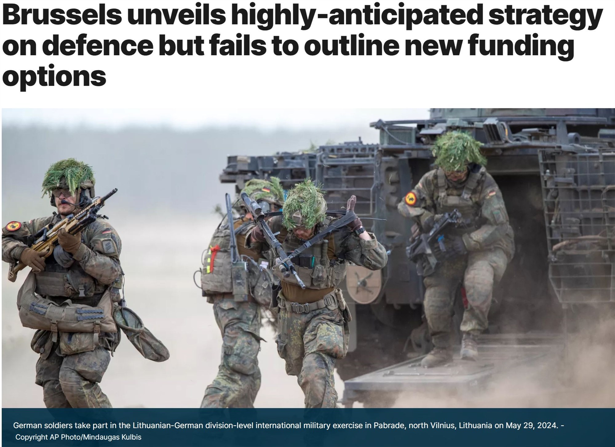 《歐洲防務白皮書》提出了彌補關鍵能力差距和建立強大國防工業基礎的解決方案,為成員國提出了大規模投資國防、長期加強國防工業準備等舉措,希望使歐洲在2030年擁有強大的國防能力。