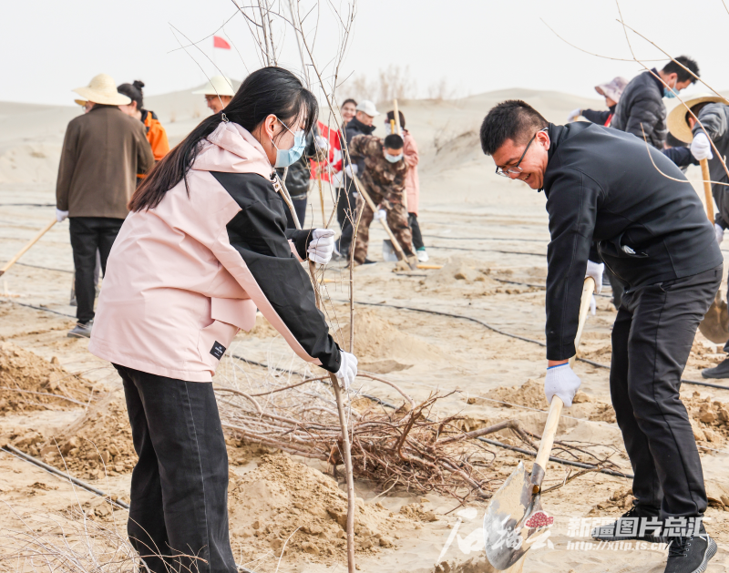 墨玉縣今春計劃完成植樹造林16242.5畝,胡楊、楊樹等鄉土樹種將構成防風林帶主體。幹部羣眾積極投身到植樹活動中,栽下一棵棵樹苗,為春天增添新綠。