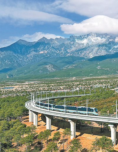 雪山、繁花與牧場,構成了一幅美麗畫卷,令人陶醉其中。“風景太美了!”遊客賴先生是第二次來雲南麗江,這次旅行他體驗了麗江雪山觀光火車。自2月12日開通以來,麗江雪山觀光火車迅速成為旅遊界的新“爆款”。這列由我國自主研發的全球首列全景觀光山地旅遊列車,以其獨特的設計和舒適的體驗,為遊客帶來一場別具一格的雪山之旅,更成為連接麗江古城與玉龍雪山的“黃金紐帶”。