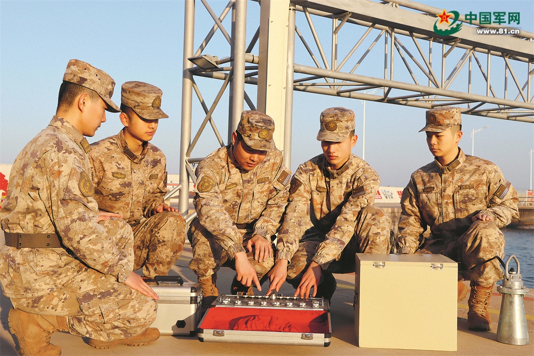 時值冬日,寒風夾着海水抽打在官兵臉上,手套不時與纜繩凍在一起。時間一分一秒過去,分析計算、反覆通測、磁場達標……結束工作,天已經矇矇亮了。