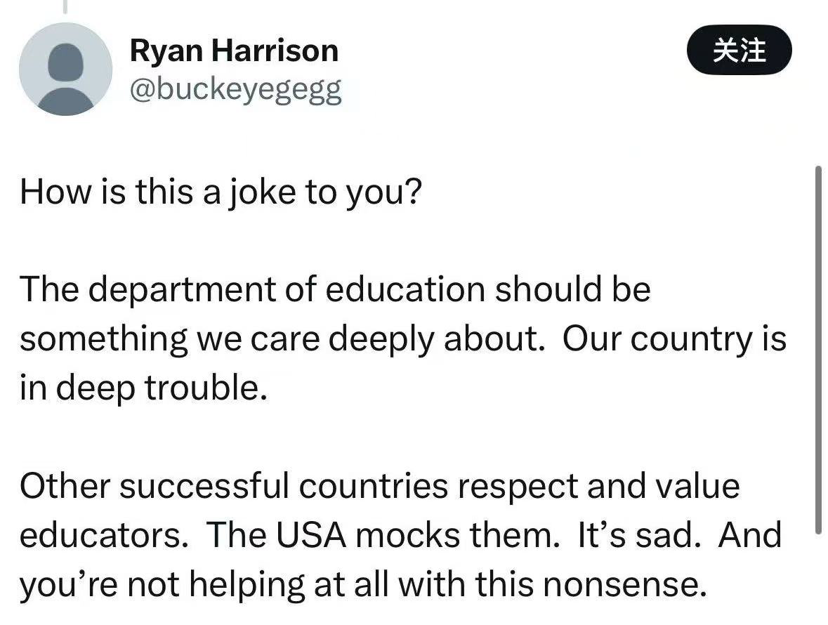 還有網友認為,其他成功的國家尊重並重視教育工作者,美國卻嘲笑他們。