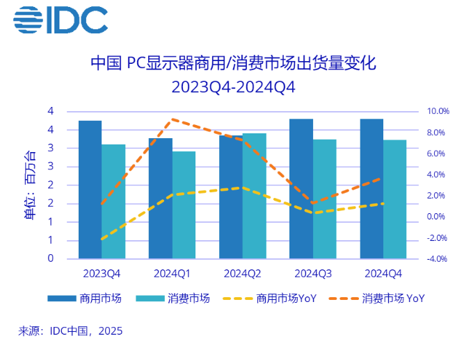 IDC: 2024年中國PC 顯示器市場出貨量同比增長3.3%