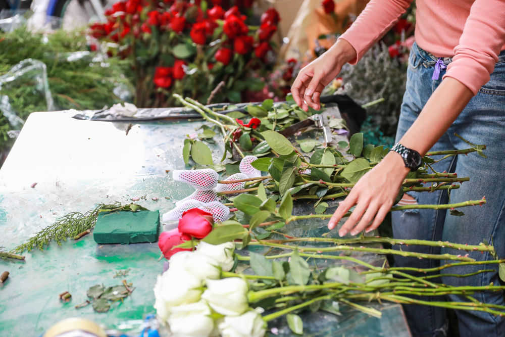 2019年2月14日,在泰國曼谷帕空鮮花市場的一家花店,工作人員將從雲南進口的鮮花製作成花束和花盒。東南亞是雲南花卉的傳統市場,在“一帶一路”倡議推動下,中國與東南亞國家相互開放的產業合作,為雙方商貿活動注入新動力。隨着昆曼國際大通道打通,經過採摘、分級、修枝、包裝、拍賣等過程,雲南鮮花只需近40小時的冷鏈運輸便可抵達曼谷。