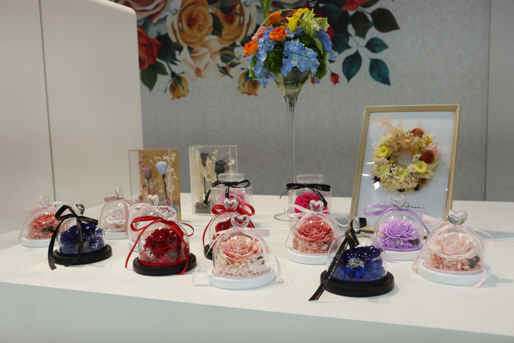 2024年12月8日,在雲南省昆明市,花藝師直播講解花束製作方法。