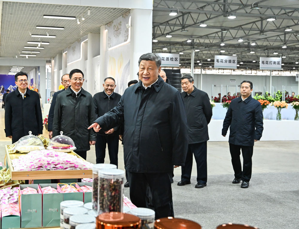3月19日下午,習近平總書記來到雲南麗江現代花卉產業園,同現場村民和技術人員親切交流,向他們詢問花卉品種、市場銷路、收入等情況。