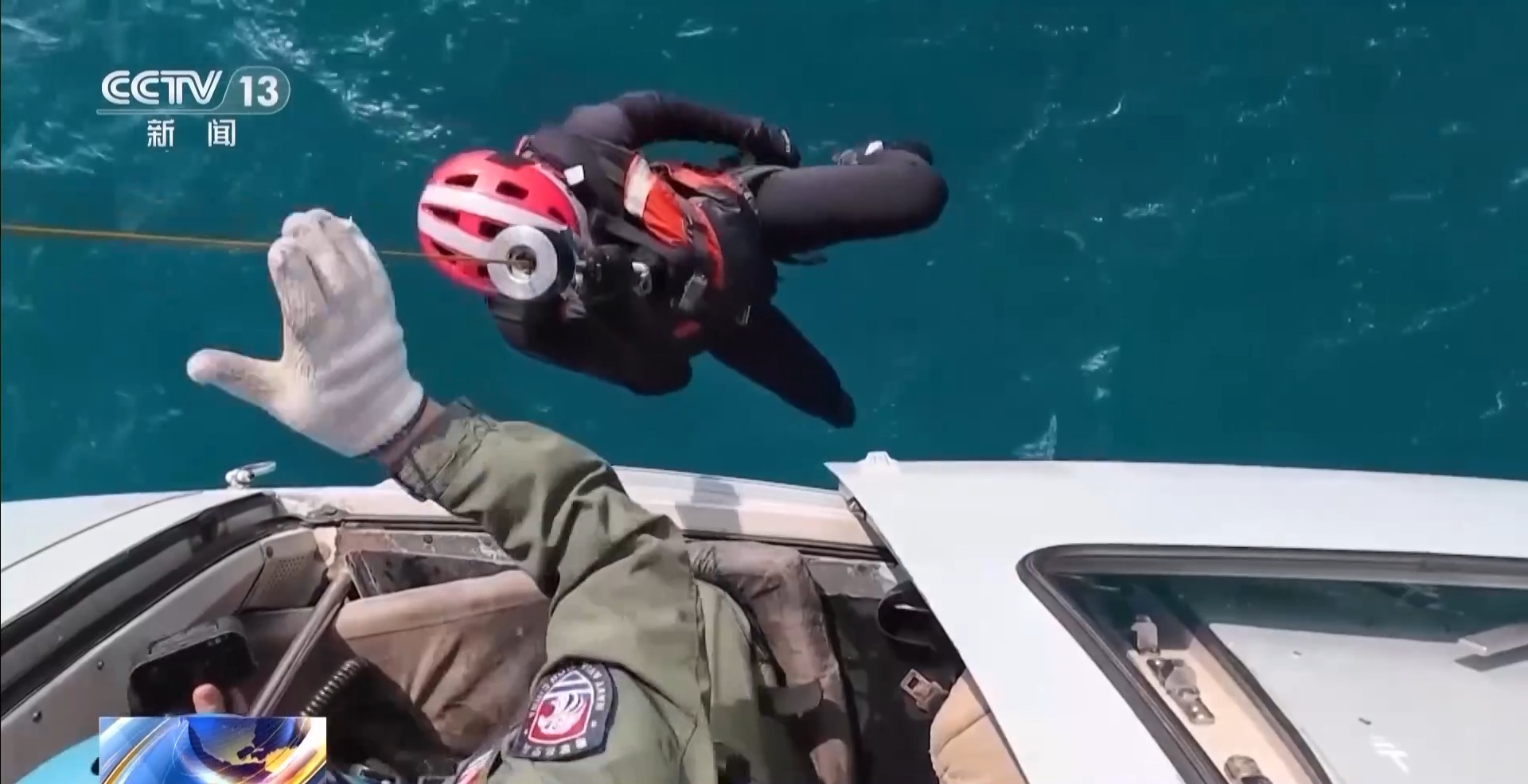 *南部戰區海軍航空兵某部 陸健:*在作業過程中,我需要集中全部的注意力,邊觀察落水目標位置和波峯波谷的情況,邊引導駕駛員及時修正飛機位置,同時還要抓住有利時機,操縱絞車下放搜救員,讓搜救員能夠更快地接近目標。