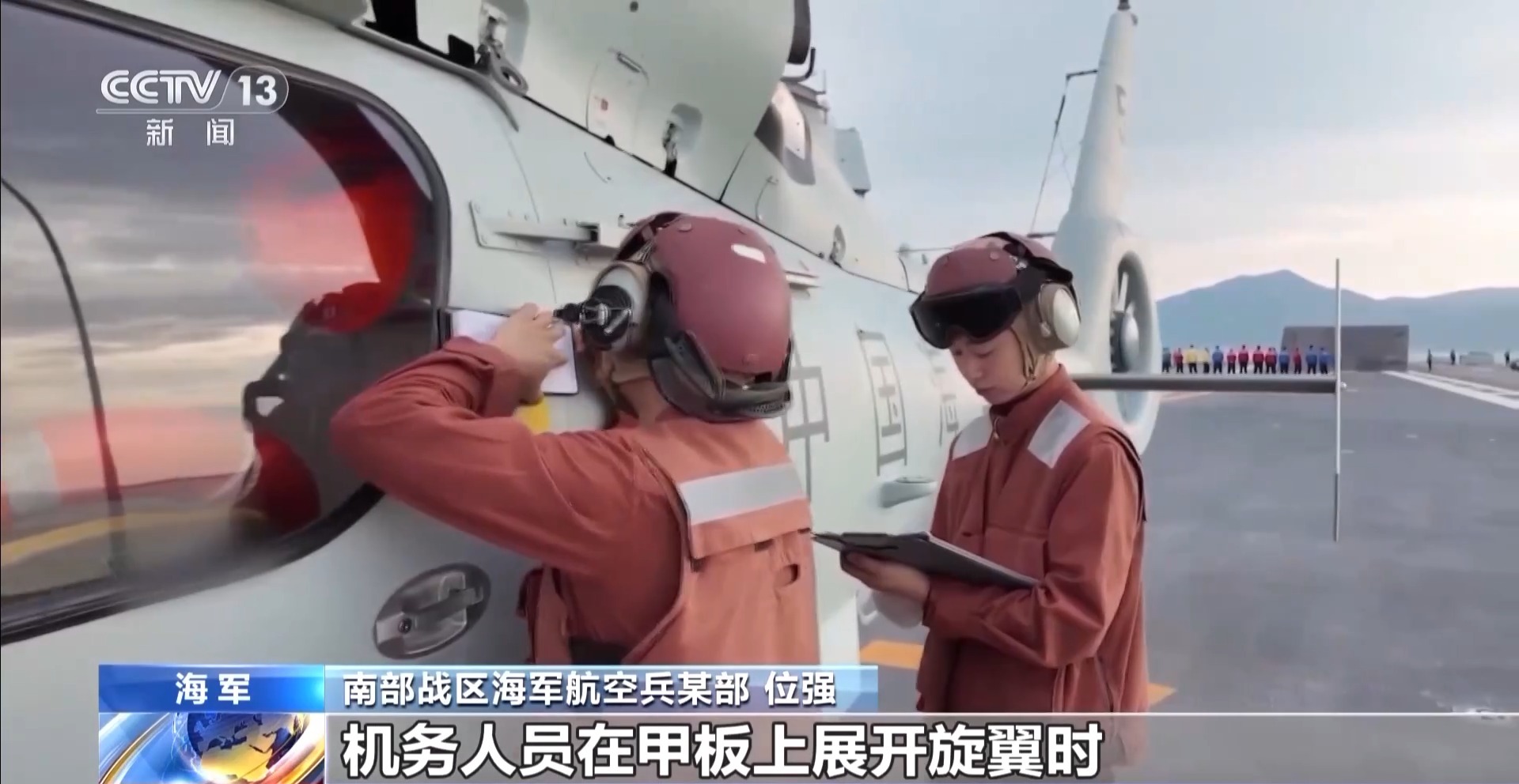 *南部戰區海軍航空兵某部 位強:*此次演練,海況複雜、風浪較大,機務人員在甲板上展開旋翼時需要密切配合,飛行前檢查必須仔細謹慎,保證人員的安全。
