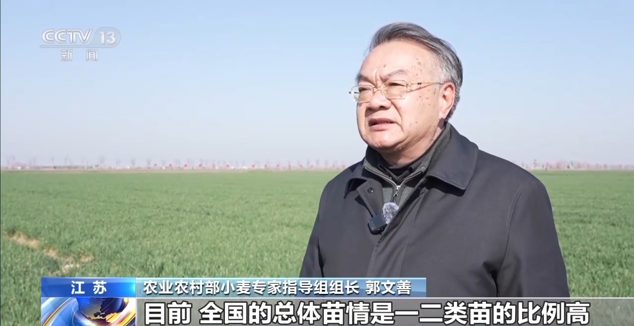 *農業農村部小麥專家指導組組長 郭文善:*目前,全國的總體苗情是一二類苗的比例高,苗情好於常年,與上年持平,具備豐收的苗情基礎。