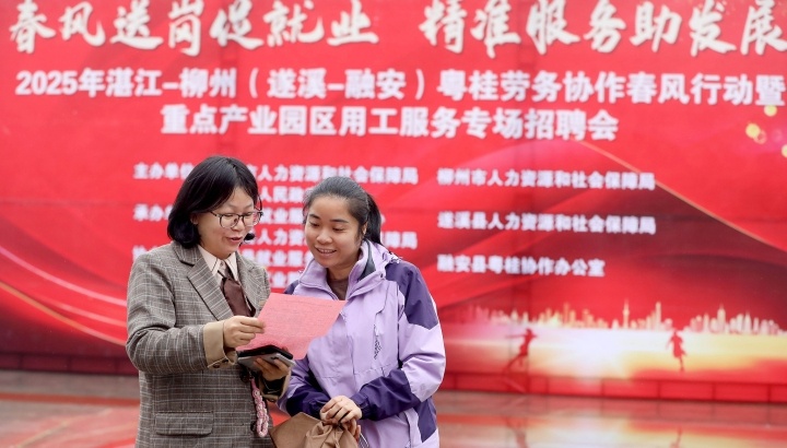 2025年3月,求職者在粵桂勞務協作春風行動招聘活動上了解崗位信息