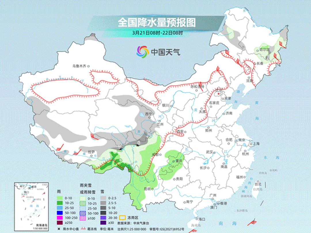 温馨提醒,西南地區和西藏東部多雨雪天氣,公眾需注意雨雪天氣對出行的不利影響,駕車保持車距,控制速度。西北及中東部大部持續晴朗乾燥,需注意用火用電安全。