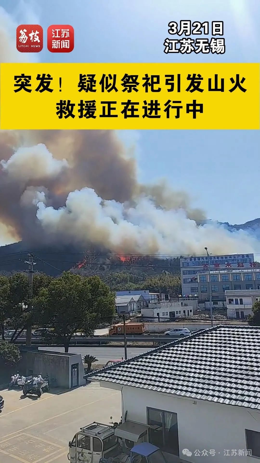 3月21日,江蘇無錫宜興丁蜀鎮大潮山附近發生火災,疑似祭祀引發山火,多支救援隊伍趕赴現場處置。目前救援正在進行中,具體原因正等待官方公告。