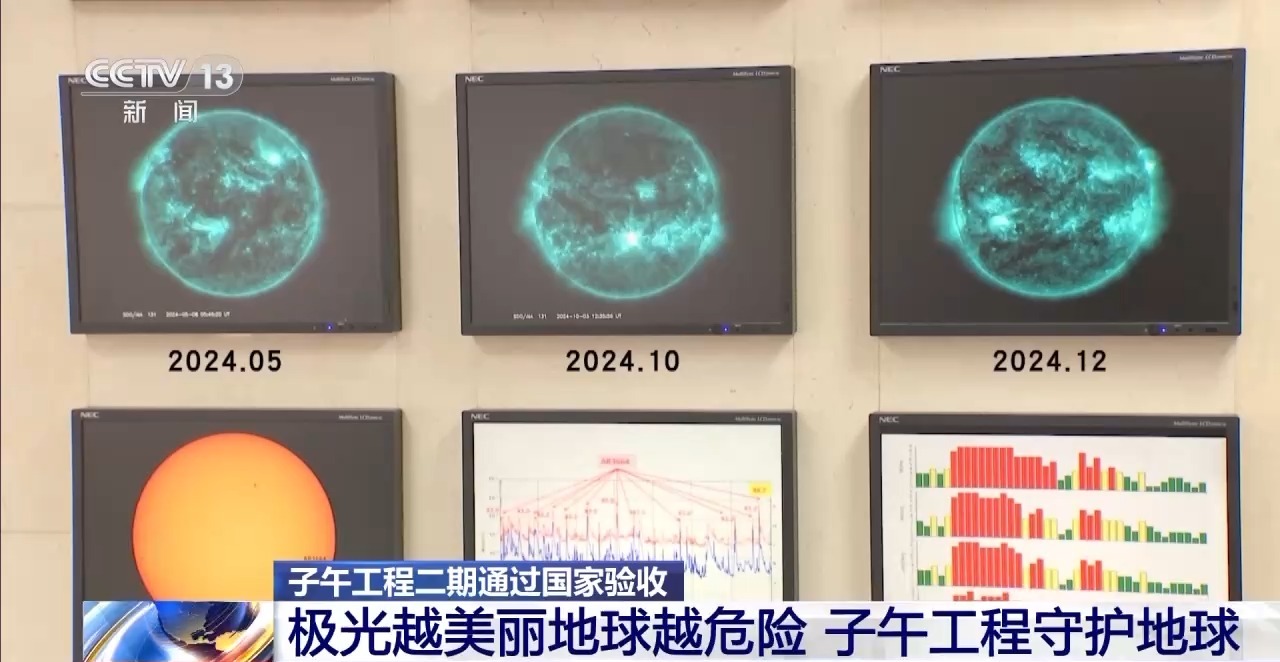 為了全方位監測太陽的一舉一動,中國科學院空間中心的科學家們是花了十多年的時間,那麼在地球上是沿着東經120度,北緯30度,東經100度,北緯40度這樣兩縱兩橫很明顯的“井”字,佈局了31個台站近300台設備,是首次實現了對日地空間環境全圈層多要素的立體式綜合式探測。