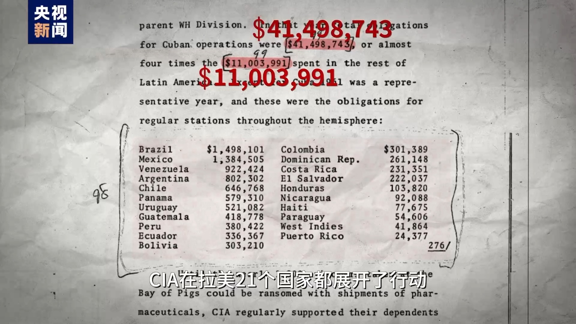 1961年的一份賬單顯示,CIA在拉美21個國家都展開了行動,其中包括參與暗殺多米尼加共和國領導人特魯希略。對歐洲盟友,CIA也毫不手軟,他們甚至計劃“闖入法國駐美領事館竊取機密文件”。對古巴和古巴領導人的行動更是搞了不止一次,對卡斯特羅的暗殺計劃還遭到了時任司法部長、肯尼迪的弟弟羅伯特·肯尼迪的反對。