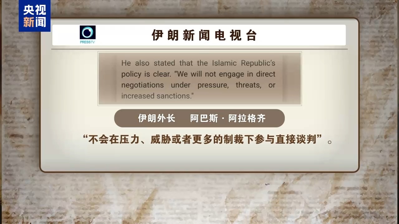 伊朗外長阿拉格齊回應説,伊朗將會在接下來幾天內通過“適當的渠道”回覆特朗普的信件。伊朗的政策是清晰的,那就是“不會在壓力、威脅或者更多的制裁下參與直接談判”。