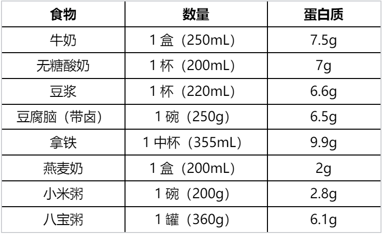 根據最新版的《中國居民膳食營養素攝入量》,*成年女性建議每天蛋白質總量是55g,男性是65g。*根據早餐佔全天比例的30%來看,一頓合格的早餐,女性和男性分別要攝入至少16.5g和19.5g的蛋白質。
