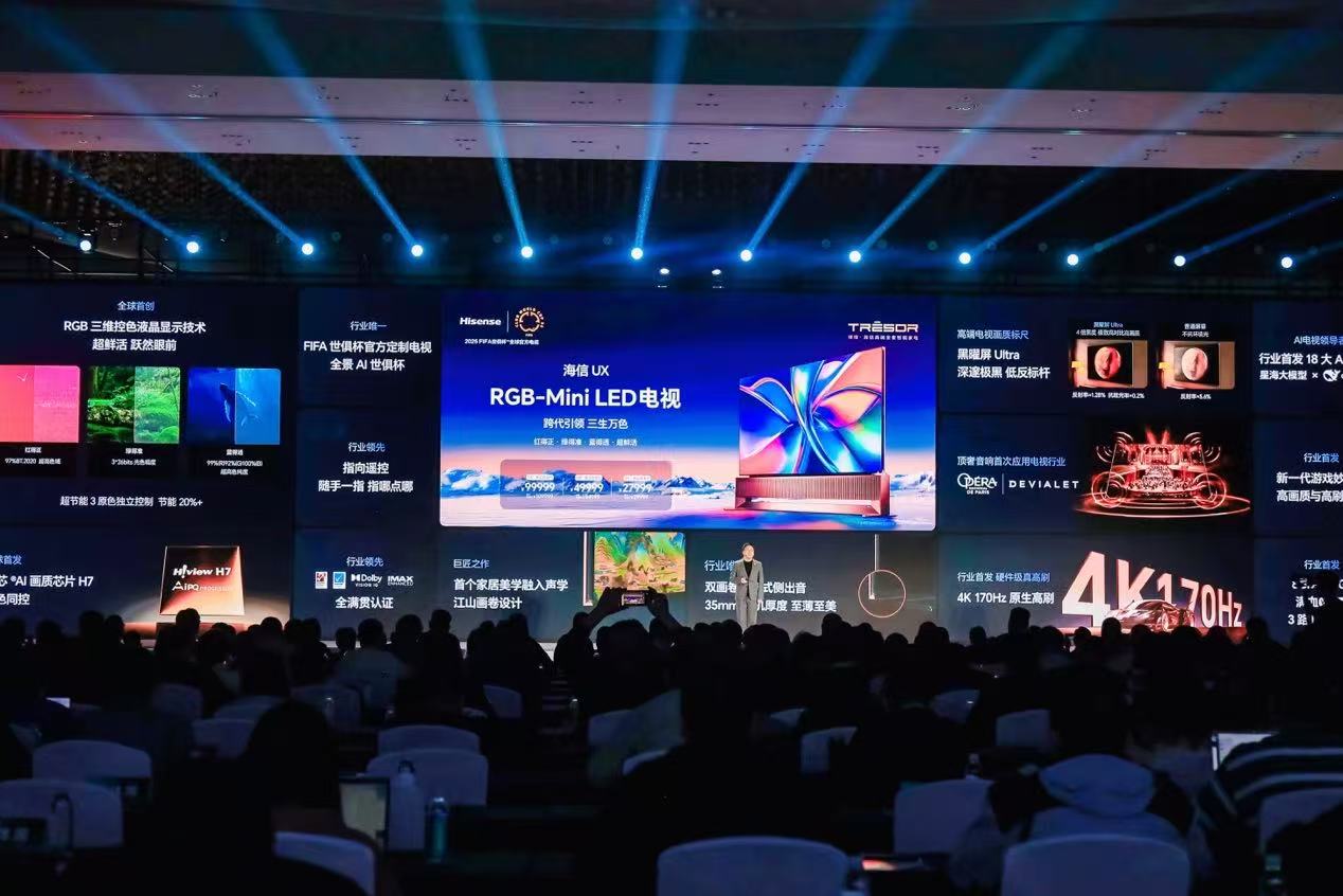 在顯示領域,海信視像科技公司總裁李煒發佈了採用RGB-Mini LED和Micro LED兩大創新技術路線的超旗艦新品UX系列。這些新品為用户帶來了頂級賽事的全新視聽和交互體驗,以技術創新引領大屏時代。李煒表示,過去一年31萬中國家庭選擇了百吋電視,環比增長近3倍。2024年,海信系百吋電視的出貨量份額高達58%,相當於100個家庭中有58個家庭選擇海信百吋。海信提供最全面、最強大的百吋解決方案,將把百吋的沉浸、震撼帶到更多家庭。