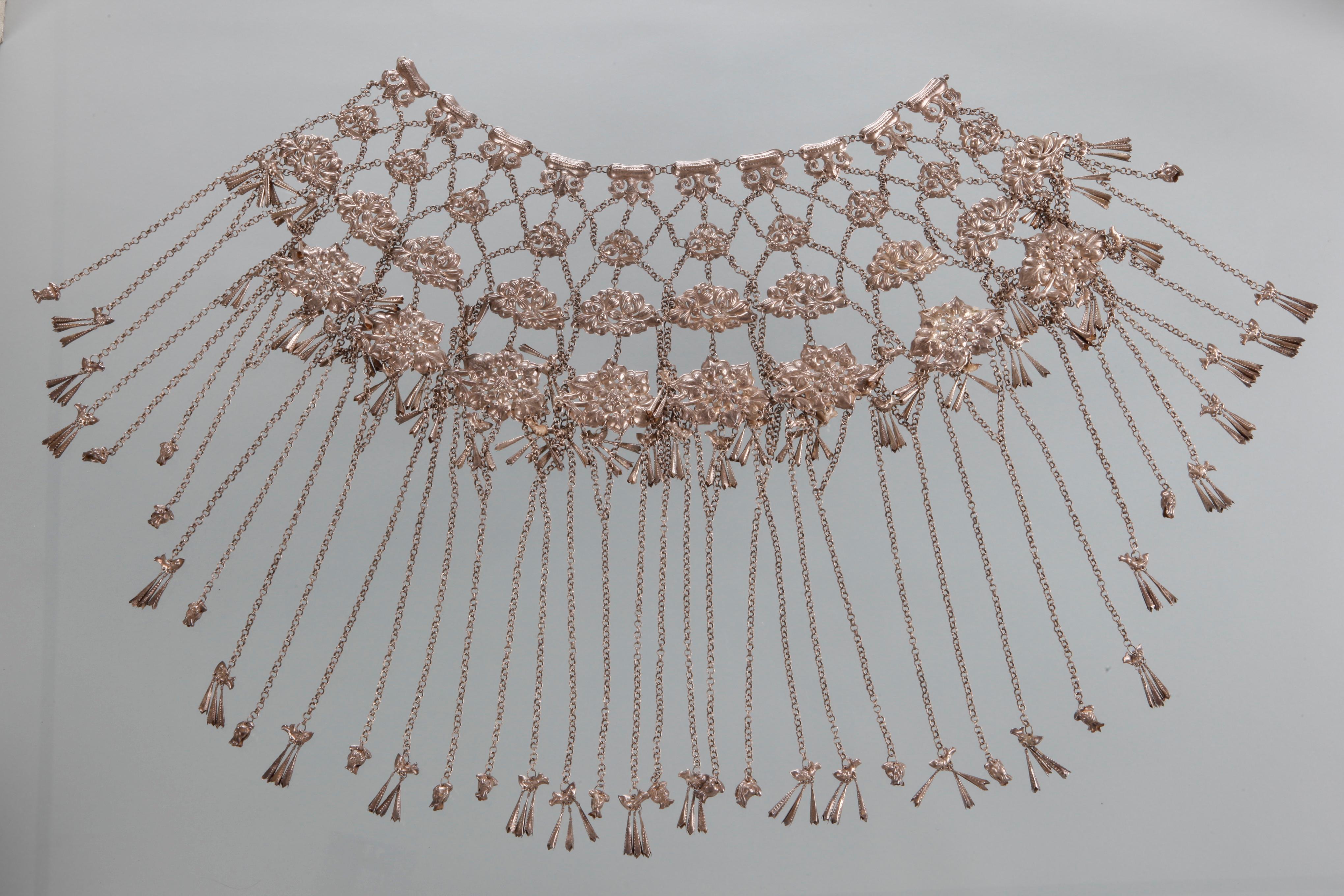 花草 、動物等吉祥圖案的4排銀牌相綴連