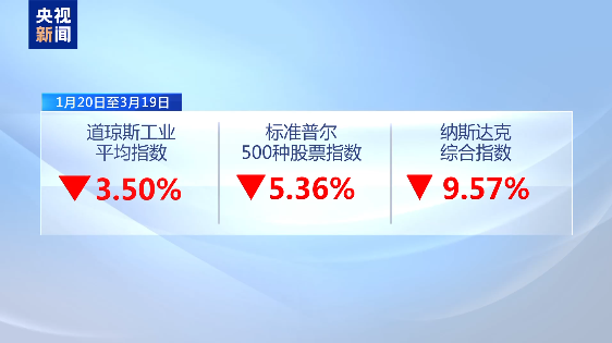 特朗普政府上台伊始就密集推出一系列關税政策,有關“特朗普衰退”的擔憂顯著拖累美國股市。自1月20日特朗普就職美國總統以來,截至3月19日收盤,道瓊斯工業平均指數跌幅達3.50%;標準普爾500種股票指數跌幅達5.36%;納斯達克綜合指數跌幅達9.57%。而體量巨大的“美股科技七巨頭”近期股價也一路下挫。美媒3月14日報道,在過去的三週時間裏,“美股科技七巨頭”市值蒸發2.7萬億美元。