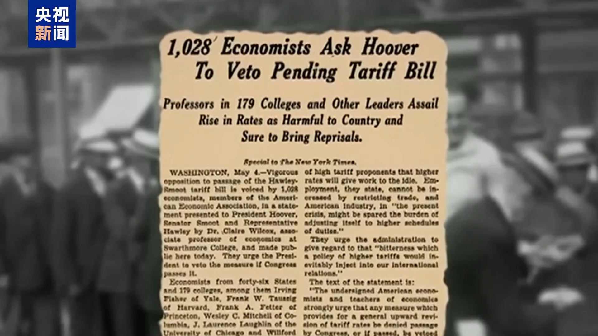 1930年,胡佛不顧1000多名經濟學家的聯名反對,簽署了這份法案,引發美國主要貿易伙伴報復,並演化為全球貿易戰。