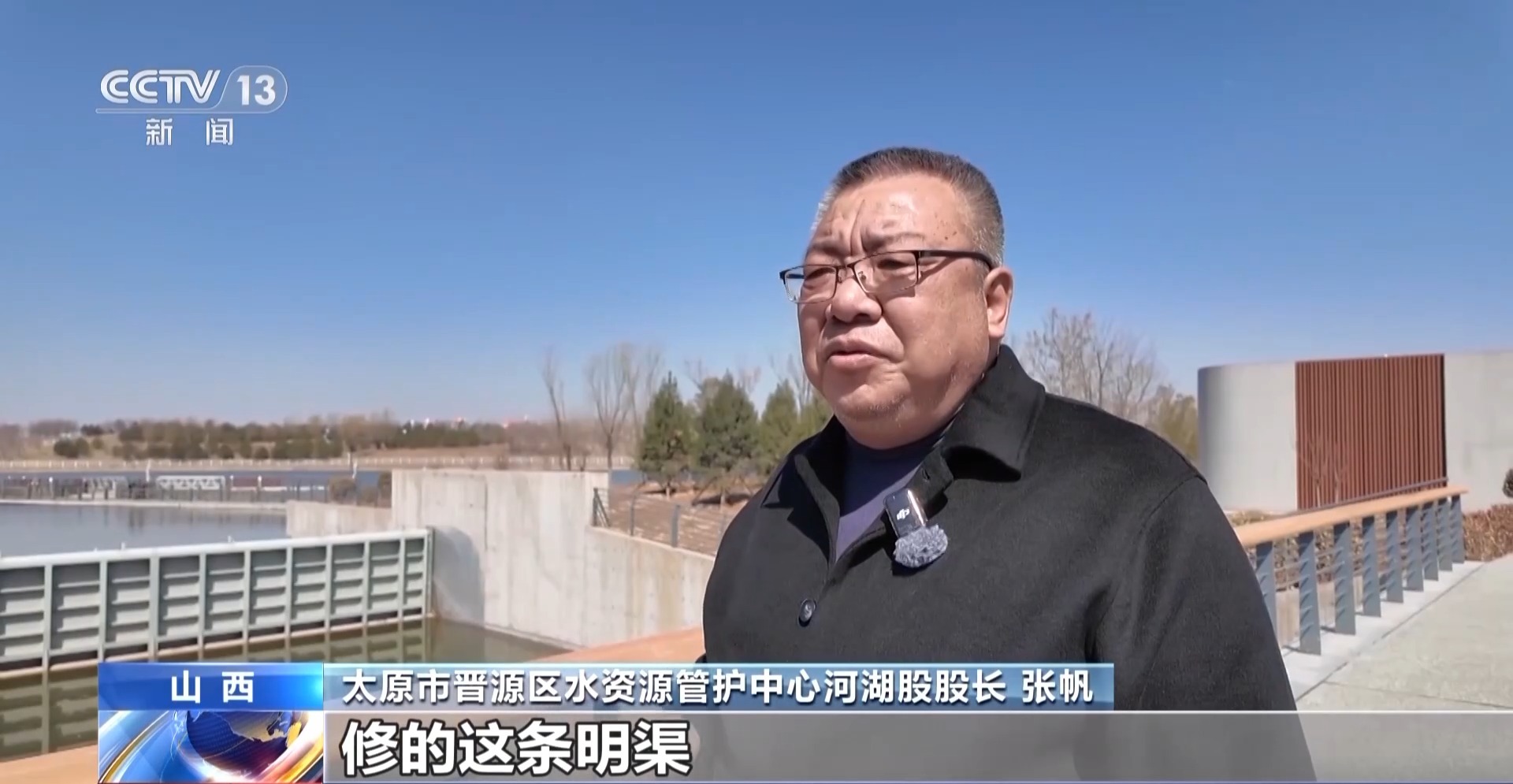 *太原市晉源區水資源管護中心河湖股股長 張帆:*去年我們投資了三千多萬元,修了一條明渠,它通過汾河最終匯入黃河。一方面提升了晉陽湖的防洪能力,另一方面可以使晉陽湖實現水體自然交換,對它的生態環境改善有了明顯作用。