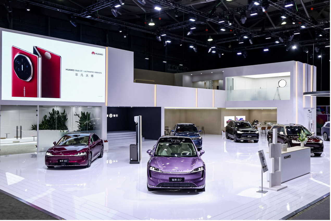跨界而來的還有大家熟悉的華為,此次雖説並不是華為首次參展AWE,但是往年華為只有一個展區,集中展示全屋智能解決方案,以及1+8+N全場景智慧生活。而今年,不僅是華為的展台面積跨越了整個場館,還通過沉浸式的智家實體場景搭建展示了“人、車、家”全場景聯動體驗。鴻蒙智行旗下的享界S9、智界R7、問界M9等明星車型也被搬上了展台,這在所有展商裏獨樹一幟。