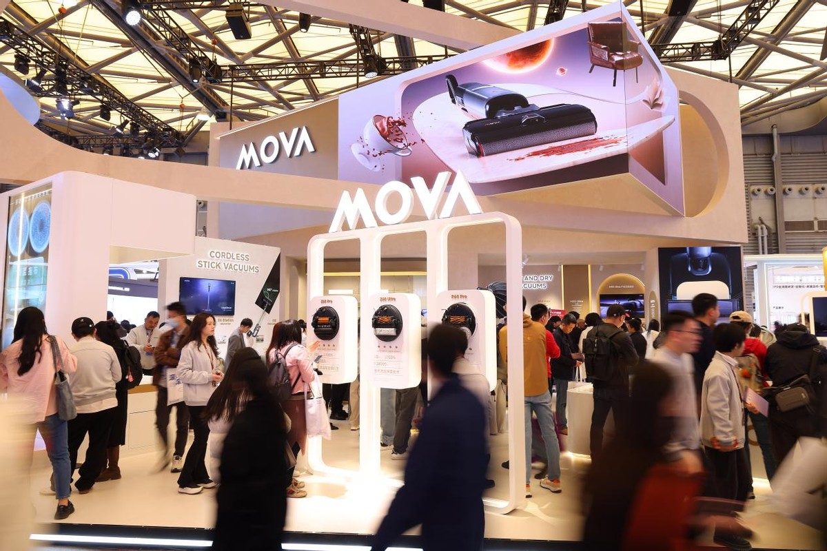 尤其是這次展台上的明星產品——洗地機X40 Pro。只見MOVA中國區負責人周辰操作X40 Pro,通過“熱水融污”功能,僅用數秒便讓瓷磚上預留的頑固筆跡消失無蹤。據周辰介紹,MOVA聚焦用户三大核心需求——精準、高效、省心,通過技術迭代打造差異化體驗:綠光顯塵:突破傳統清潔設備的視覺侷限,讓隱藏污漬“顯形”,解決清潔盲區;高温熱水融污:90℃高温活水深度瓦解重污,實現99.99%的深度除菌;圖書館級AI智烘:密封式降噪結構和AI動態調節算法,將噪音控制在55分貝以內,濕度傳感器會即時監測滾刷狀態,自動匹配最佳烘乾時長。所以“清潔電器不應只是工具,而是用户的生活解決方案。”周辰在採訪中強調。這一理念恰好契合了當下消費者對“懶人科技”與“健康保障”的雙重追求。