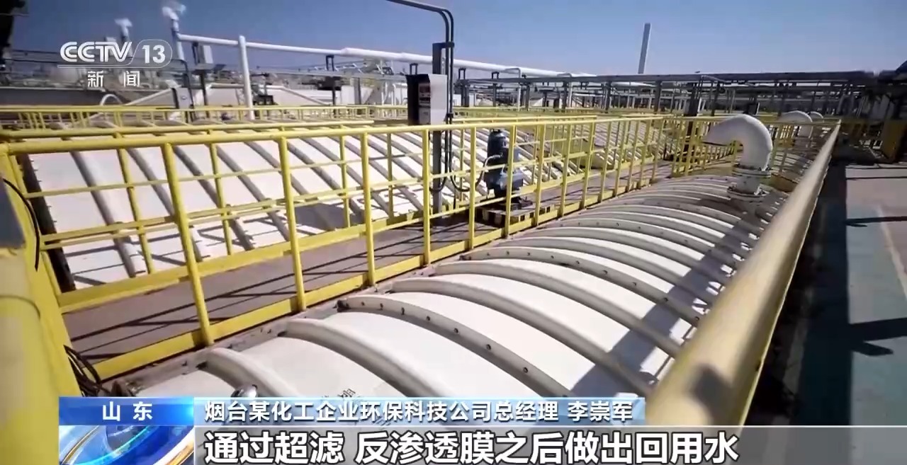 *煙台某化工企業環保科技公司總經理 李崇軍:*我們的污水處理廠最開始設計的時候就採用了污污分治、清污分治的一些策略,包括物化、生化、高級氧化的一些工藝,最後全部送到我們的回用水車間,通過超濾、反滲透膜之後做出回用水,再送回園區使用。