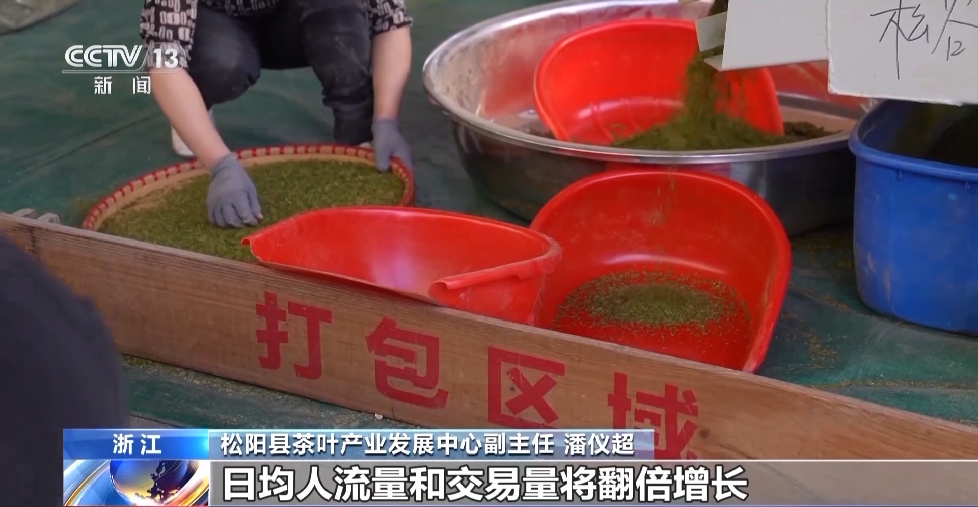 *浙江省松陽縣茶葉產業發展中心副主任 潘儀超:*預計在4月初我們會迎來全年交易的最高峯,日均人流量和交易量將翻倍增長,今年我們春茶的總產量預估是在7500噸左右。