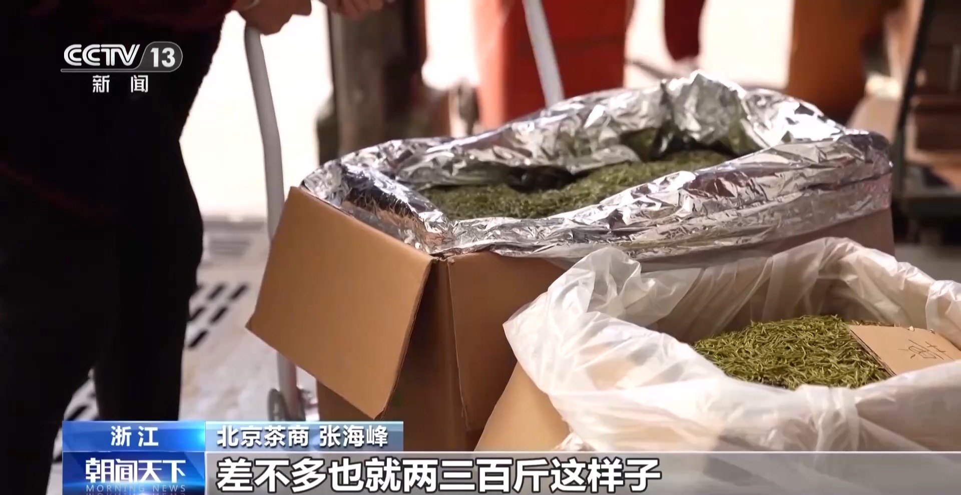 早上一開市,4000多位外地茶商便陸續湧入位於浙江松陽的浙南茶葉交易市場進行採購,*這裏平均每天都有100多噸茶葉銷到全國各地。*不斷地聞香、選茶,來自北京的茶商張海峯經過比對,挑選出100多斤上好的龍井茶,當場打包發貨,連夜發往北京。