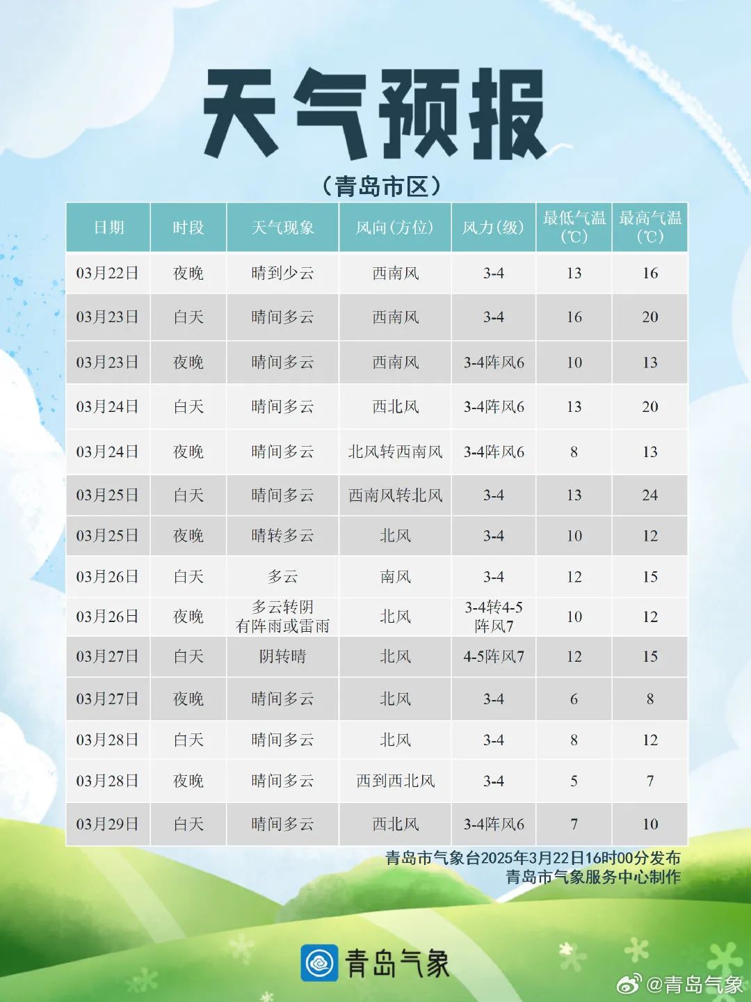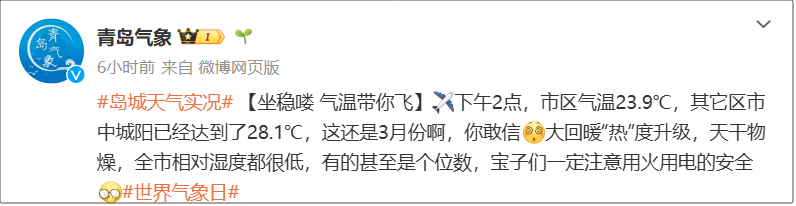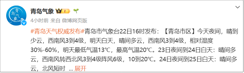 據@青島氣象 22日消息