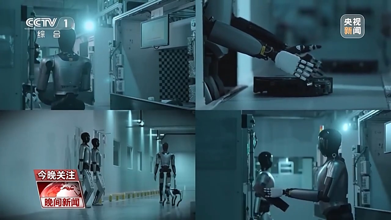 在蘇州的一家車間裏,人形機器人幫着取放零件、檢測產品質量、掃碼入庫、搬運物料。這樣一組人形機器人還能搭配着幹活,協同完成任務。