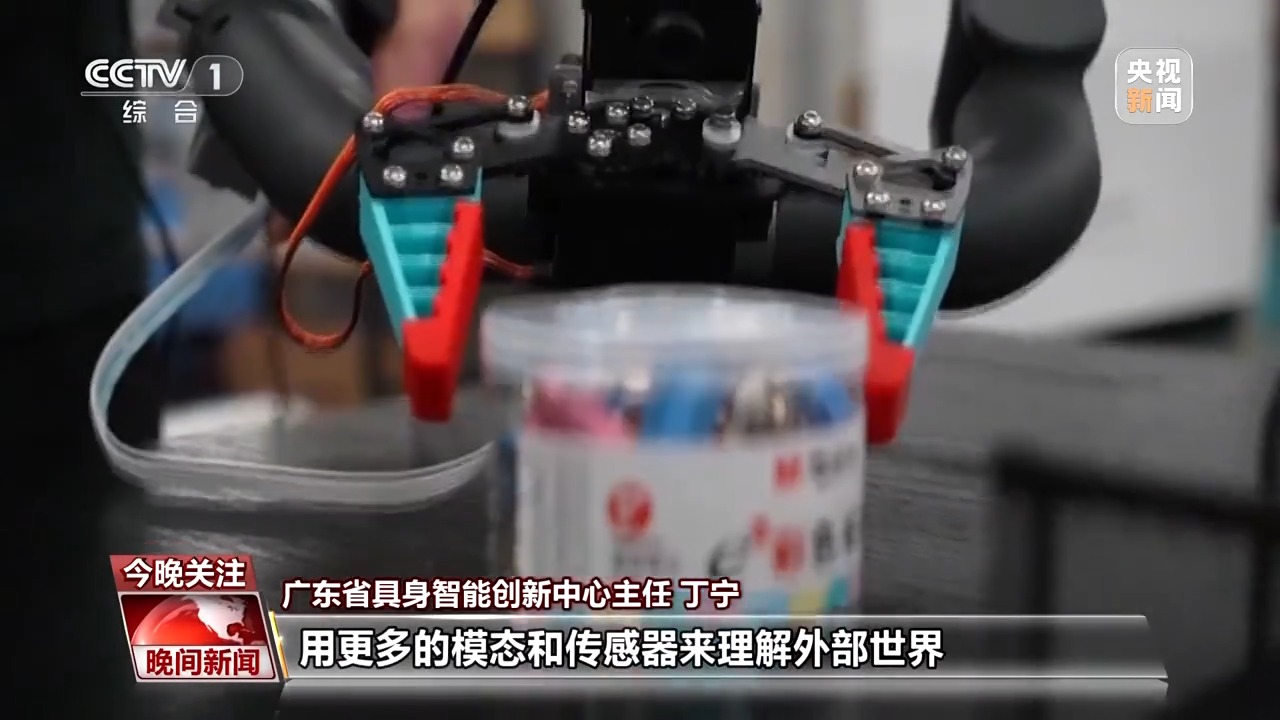 廣東省具身智能創新中心主任丁寧表示,離身智能主要是通過語言文本、圖像來作為數據的支撐,具身智能是有了自己身體之後,它就可以通過自己的交互體會,用更多的模態和傳感器來理解外部世界。