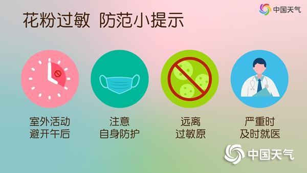 晴朗乾燥天氣下,*全國多地正處於花粉過敏高發時期,*建議敏感人羣最好避開10時至17時這一花粉濃度較高時段進行户外活動,外出佩戴好口罩,用鏡片眼鏡代替隱形眼鏡,回家後及時清洗口鼻、更換衣物。如果在室內,可以關閉門窗減少空氣流動,或使用空氣淨化器降低室內花粉濃度。(來源:中國天氣網)