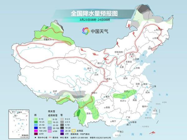 未來四天,全國大部繼續維持降水較少的天氣格局,*北方多大風天氣,不少地方午後最小相對濕度不足30%,十分乾燥。*其中今明(23日至24日)兩天,雨雪主要出現在新疆、內蒙古和西南部分地區,強度總體不大。
